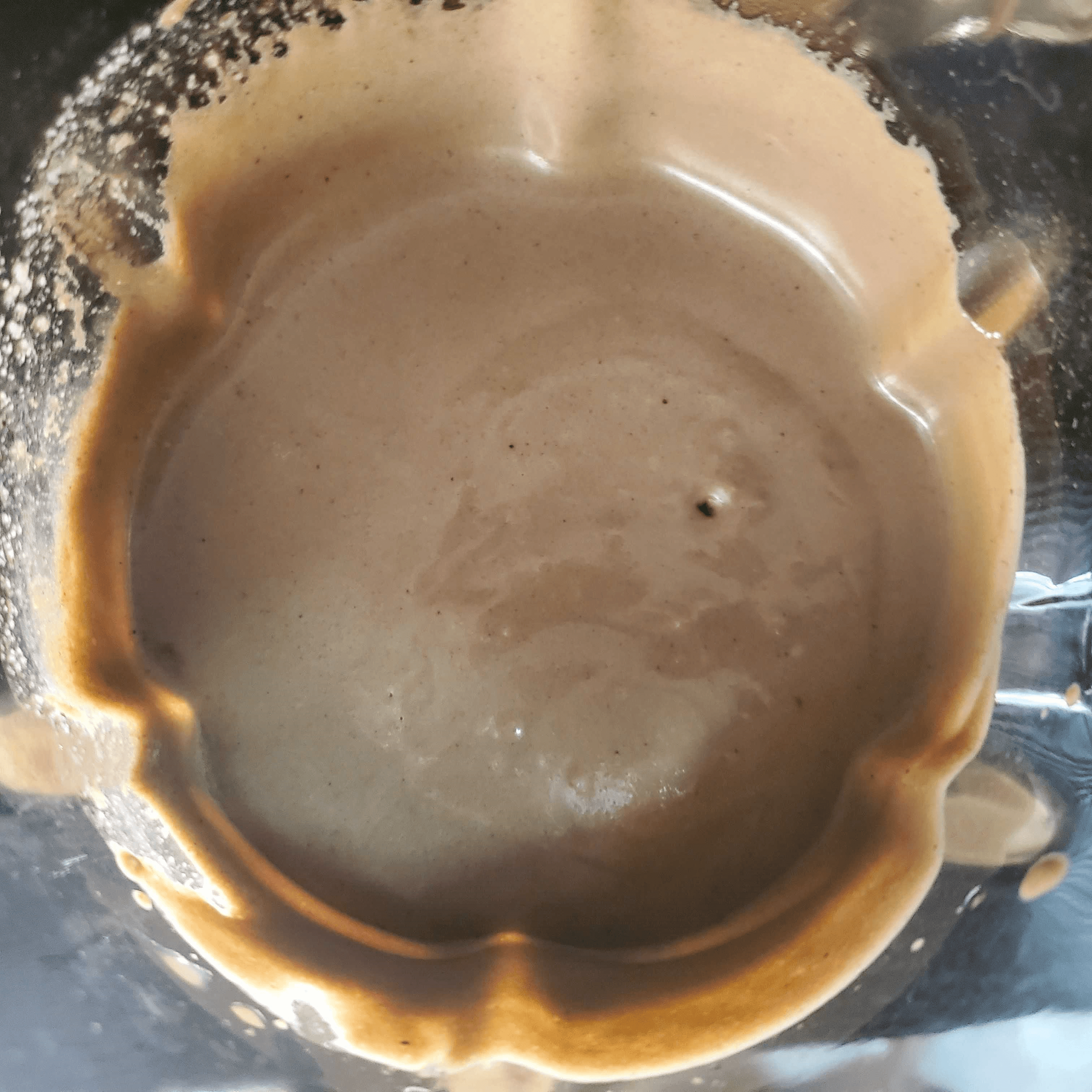 ベーキングパウダー以外の後入れ材料を入れたボウルにブレンダーの中身を加えて混ぜ、オーブンを温めている間に冷蔵庫で休ませます。