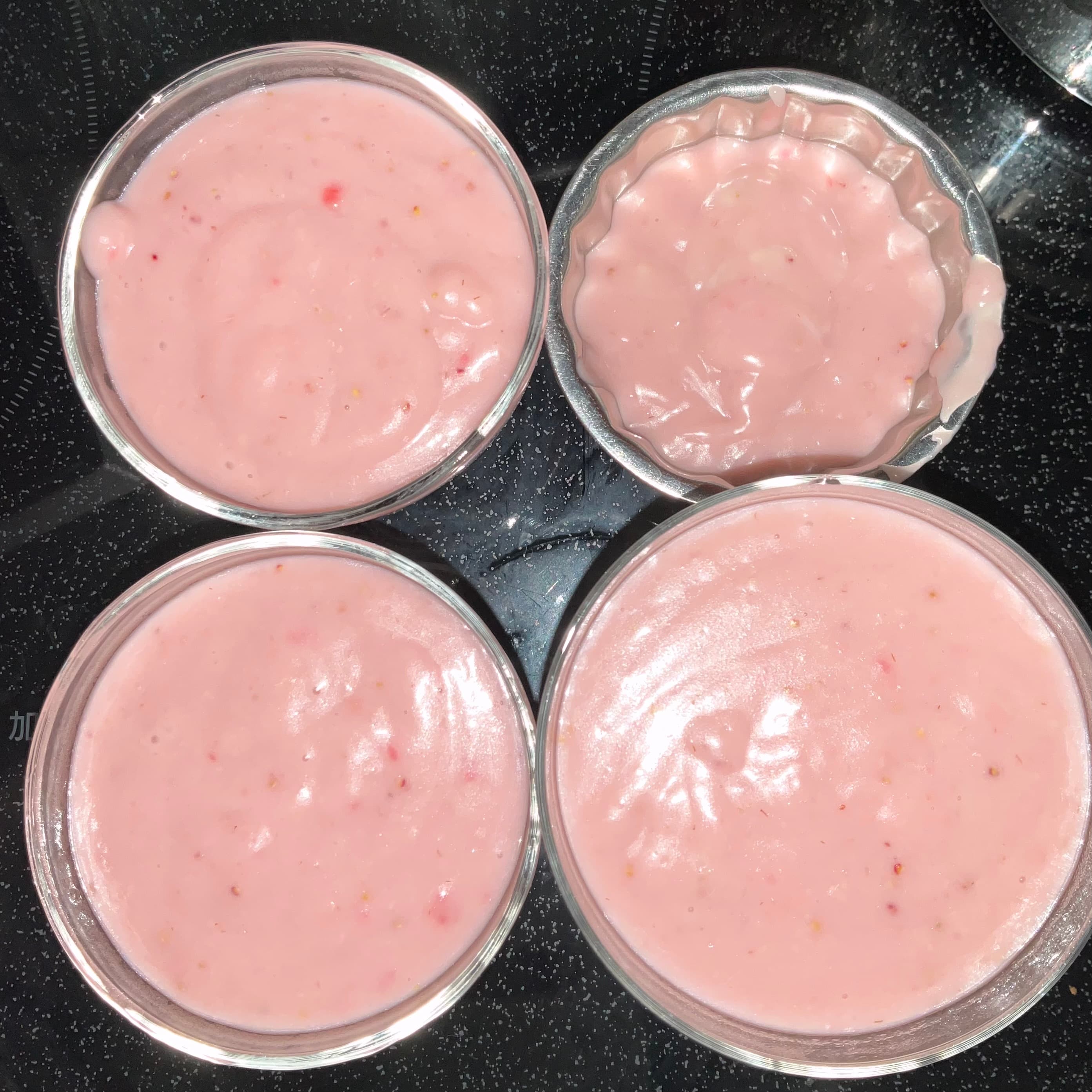 甘酸っぱいイチゴをたっぷり使った、ミルキーなコクのあるプリンです。砂糖を使っていないとは思えない、満足感のあるデザートです。(プリンカップ4つ分)