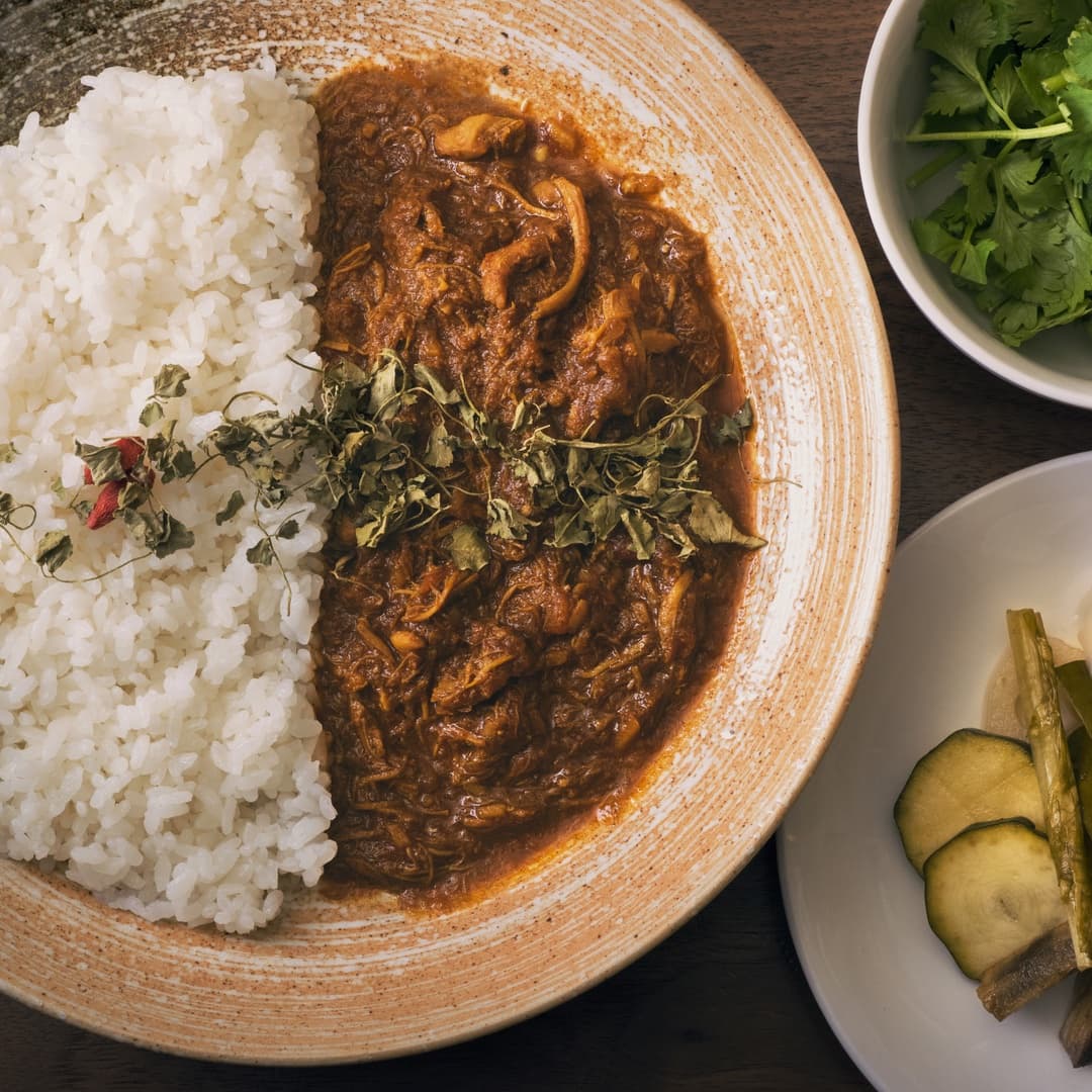 当店のカレーは、小麦粉を一切使用せず、油を最小限に抑え健康に配慮した製法でお作りしています。「美味しくて、健康的なカレー」を追求してきた当店にとって、動物由来の材料を使用せずに新たに開発した3種類の「ヴィーガン薬膳カレー」は 私達が納得できる「美味しさ」で完成する事が出来ました。 独自に調合した17種類のスパイス・生薬による様々な薬膳効果と極上の香り。他には無い食感とこだわりの味を是非ご賞味ください。